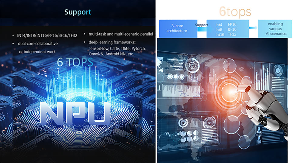4. எட்ஜ் AI: ஒருங்கிணைந்த 6 டாப்ஸ் NPU டெவலப்பர்களுக்கு முக அங்கீகார அமைப்புகள் மற்றும் ஸ்மார்ட் சென்சார்கள் போன்ற குறைந்த தாமத AI பயன்பாடுகளை உருவாக்க உதவுகிறது.
